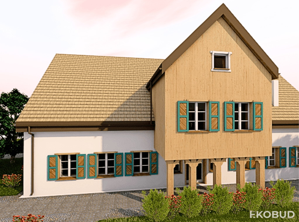- dwuspadowe dachy o kącie nachylenia 45º, pokryte drewnianymi gontami;