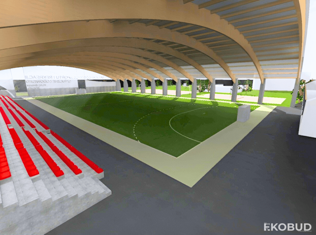 Projektowana konstrukcja zadaszenia ma na celu umożliwienie korzystania z obiektu sportowego bez względu na warunki atmosferyczne w okresie zimowym, co znacząco podniesie jego atrakcyjność i funkcjonalność.