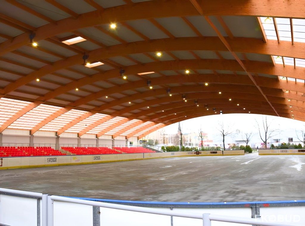 Odpowiednie zestawienie materiałów konstrukcyjnych gwarantuje nie tylko trwałość i stabilność zadaszenia, ale także umożliwia efektywne wykorzystanie naturalnego oświetlenia, co wpływa korzystnie na komfort użytkowników. Dodatkowo, środowisko przyjazne dla użytkowników lodowiska zostało osiągnięte poprzez zastosowanie materiałów, które nie generują nadmiernego nagrzewania i umożliwiają jednoczesne doświetlenie obiektu miękkim, rozproszonym światłem.