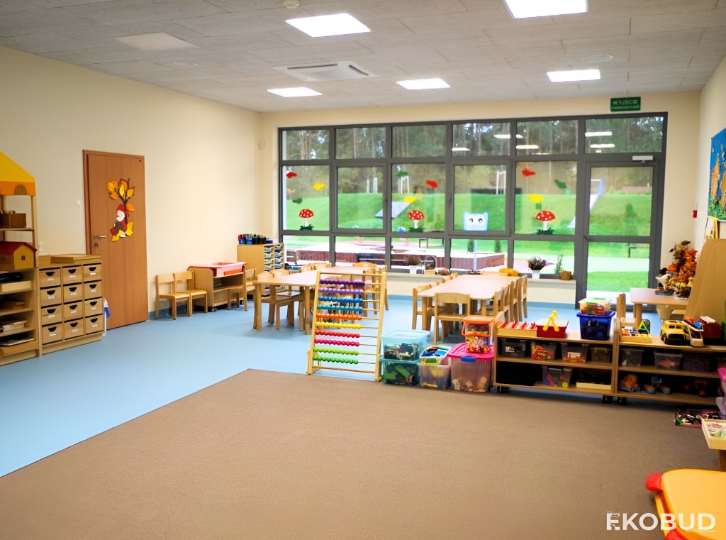 Projekt żłobka zakładał stworzenie miejsc dla 50 najmłodszych mieszkańców gminy Kleszczów, a w ramach sześciu oddziałów przedszkolnych przygotowano miejsce dla 150 dzieci. Kompleks, o imponującej powierzchni ponad 2300 m² został starannie przemyślany, oferując wewnętrzne pomieszczenia dostosowane do różnorodnych potrzeb najmłodszych.