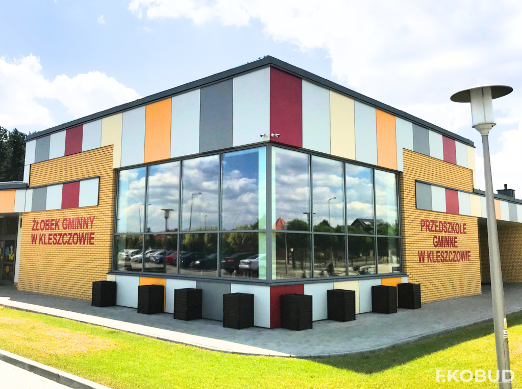 Inwestycja obejmowała wzniesienie nowoczesnego kompleksu przedszkola i żłobka w Kleszczowie. Realizacja obejmowała nie tylko budowę samego obiektu, ale także kompleksową infrastrukturę techniczną oraz wyznaczenie przestrzeni parkingowej dostosowanej do obsługi planowanego przedsięwzięcia.