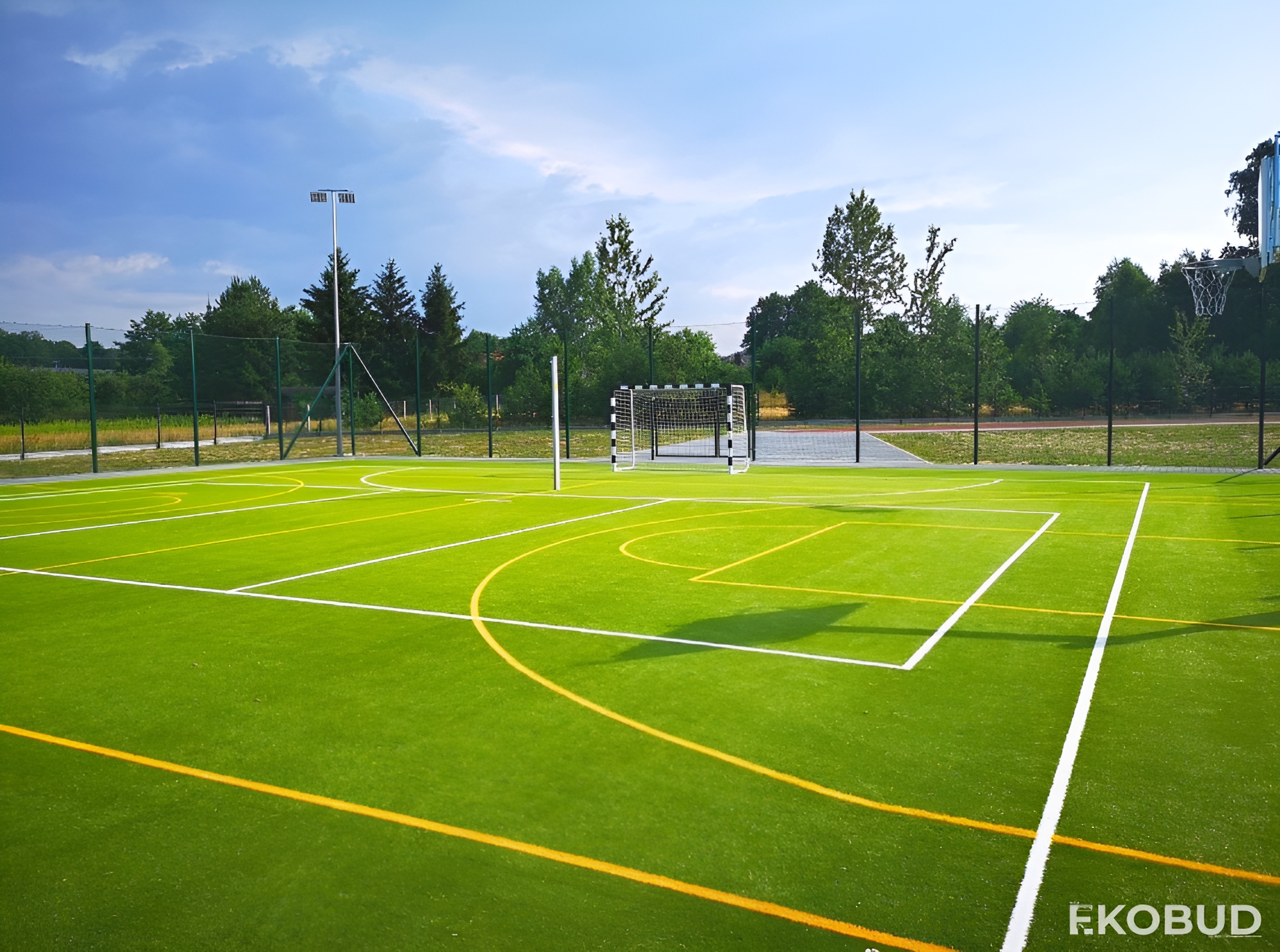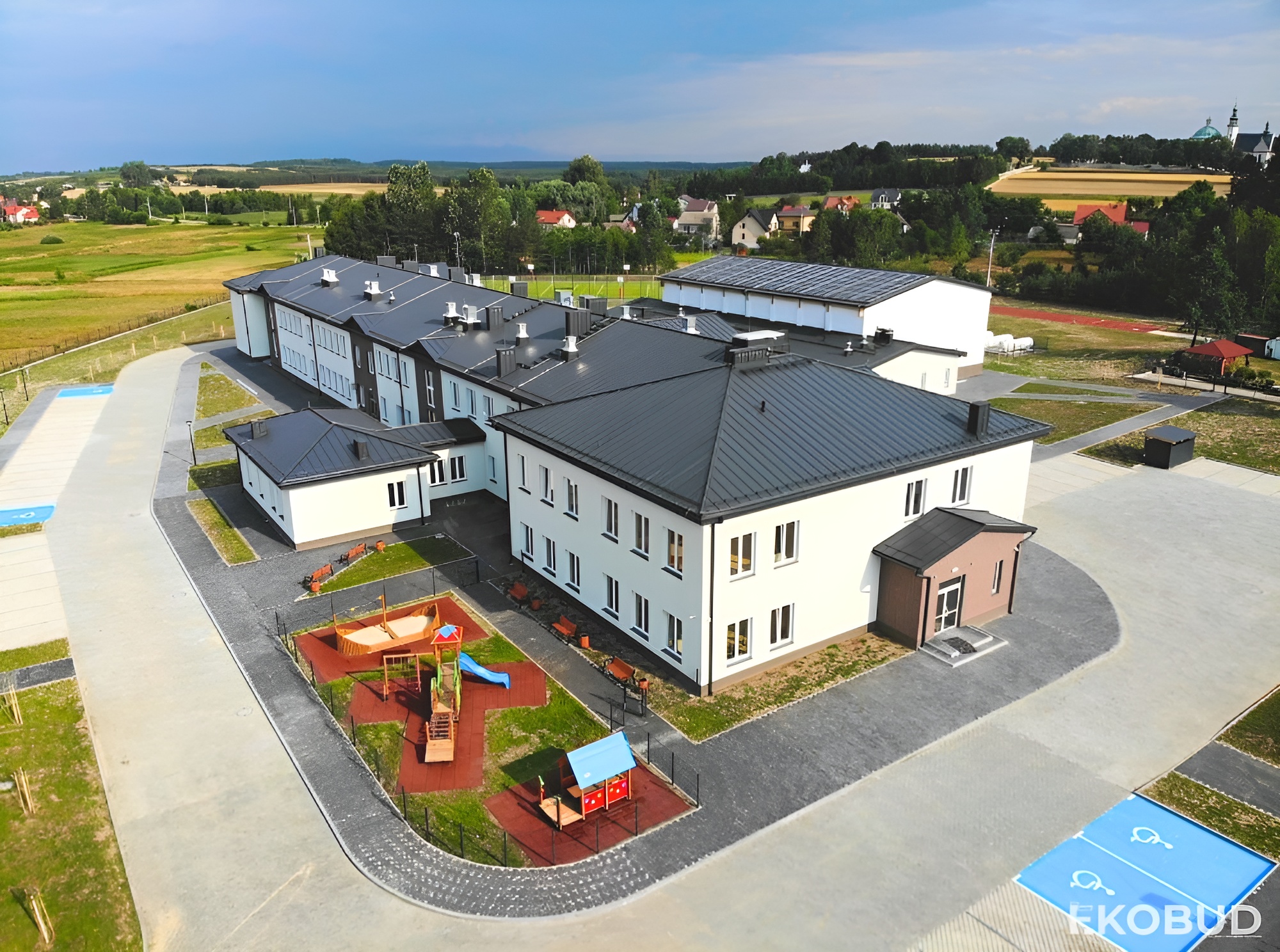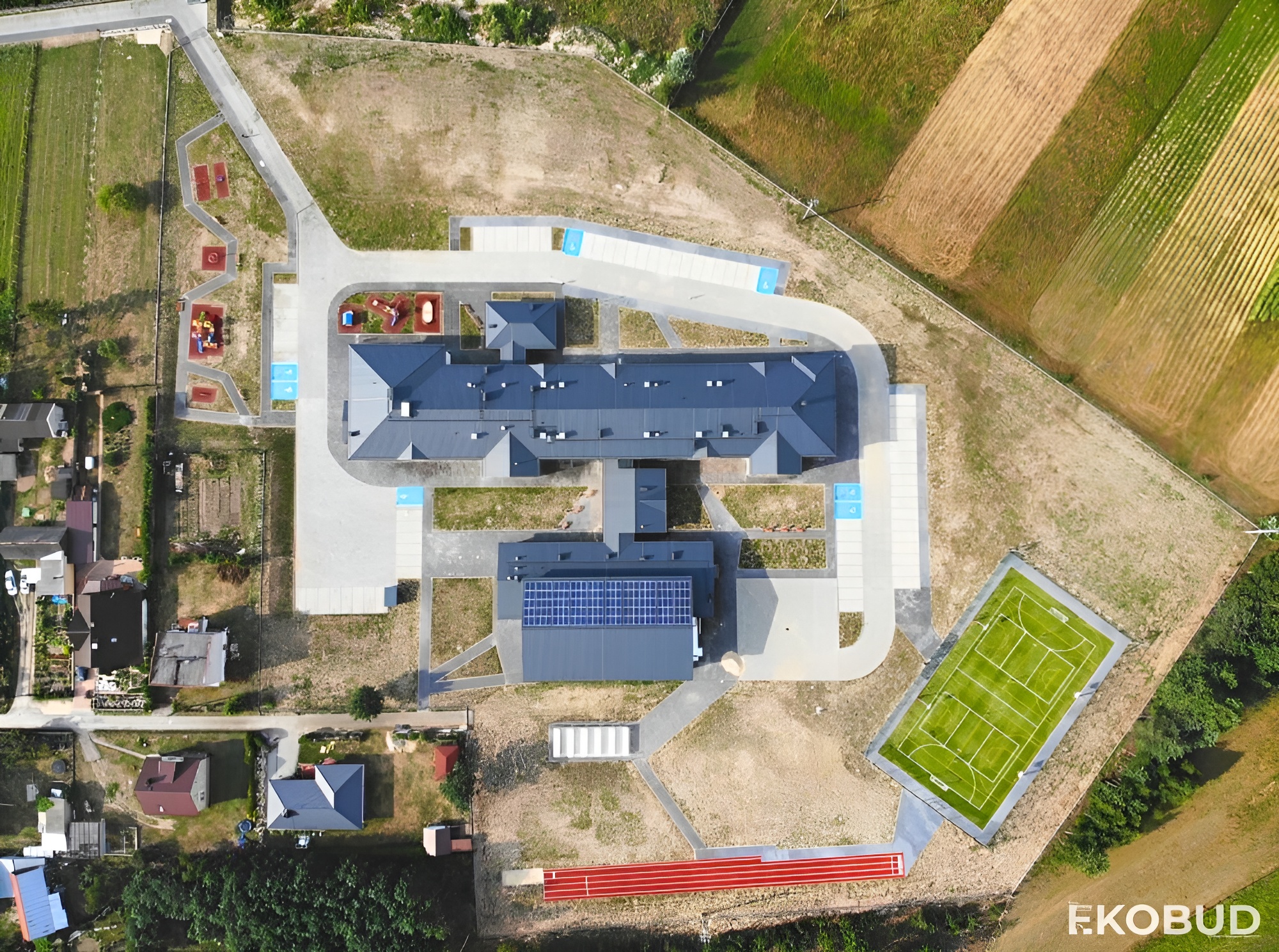 Całkowita powierzchnia użytkowa tego nowoczesnego kompleksu edukacyjnego w Piotrkowicach wynosi imponujące 4 183 m².