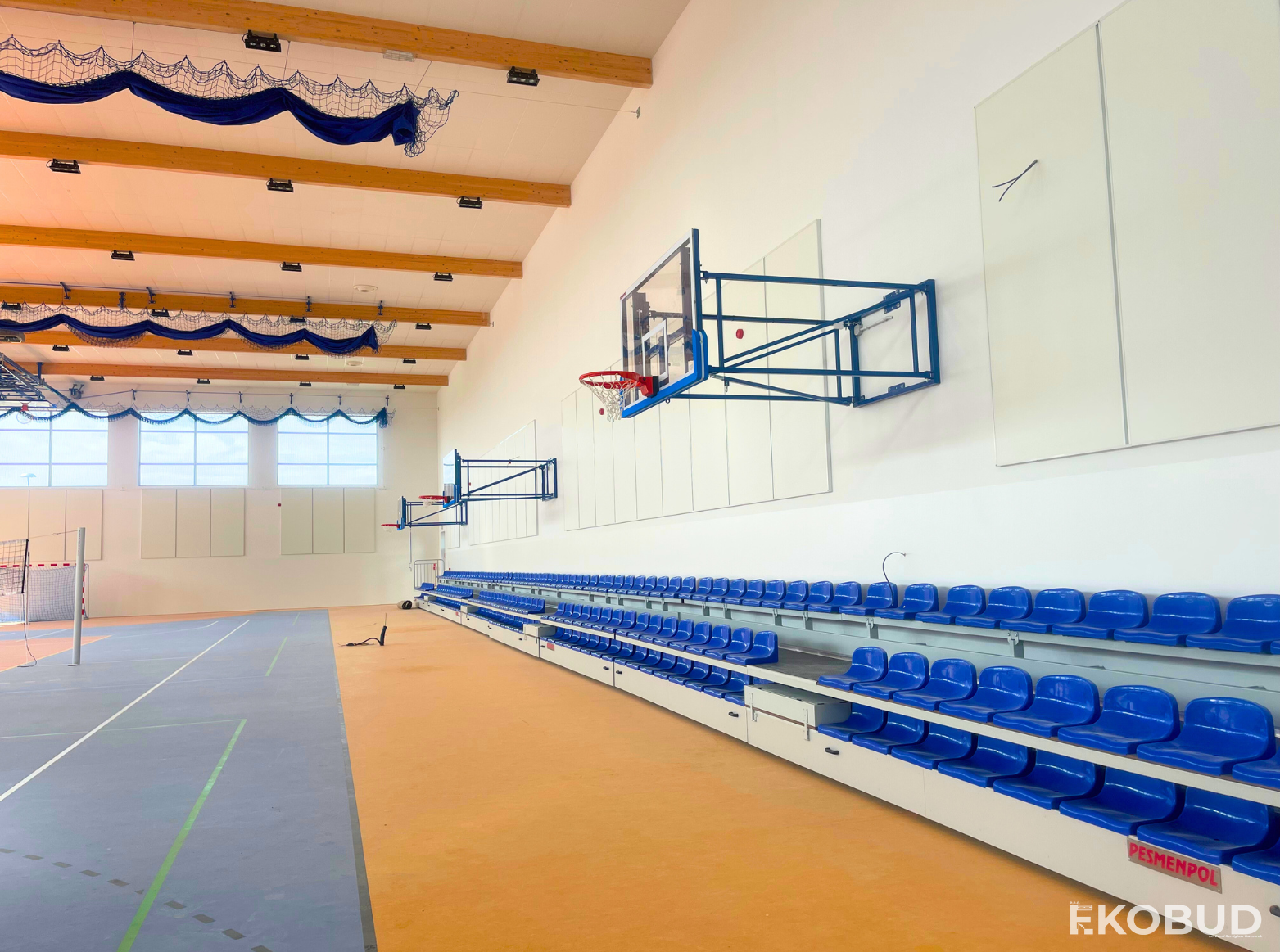 Dodatkowo, w centralnej części na piętrze zaprojektowano salę chemiczną z zapleczem, foyer, aulę z trybuną mobilną dla 224 osób, sererownię, pomieszczenie techniczne, małą salę gimnastyczną z zapleczem, 2 zespołami szatniowymi z toaletami, pokojem trenera z łazienką i toaletą dla osób niepełnosprawnych.